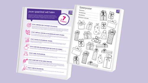 Maar hoe blijf je gemotiveerd? Spaarposters kunnen daarbij helpen! Nu je een spaardoel hebt, is het tijd om een spaarplan te maken en je voortgang zichtbaar te maken. Spaarposters zijn een leuke en effectieve manier om gemotiveerd te blijven. Ze helpen je om visueel bij te houden hoeveel je al hebt gespaard. Elke keer dat je een bedrag bereikt, kleur je een vakje in. Dit maakt sparen leuker en zorgt voor een constante herinnering aan je doel.