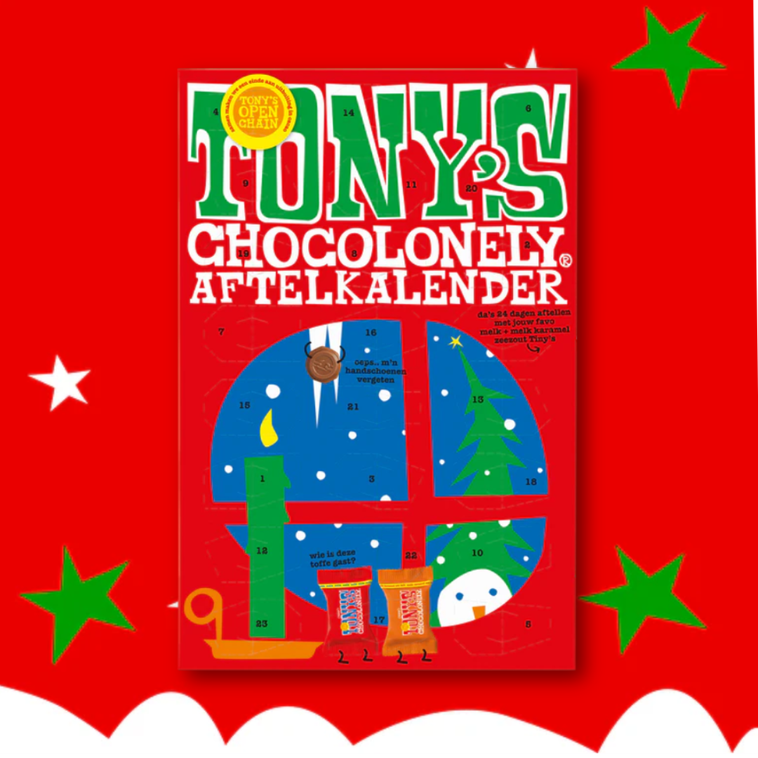 Kies je voor de klassieke karamel zeezout of ga in december voor een adventkalender om af te tellen tot kerst? De eerlijke chocola van Tony's Chocolonely valt altijd in de smaak. Leuk om deze feestdagen cadeau te doen of om gewoon zelf van te genieten. Ontvang nu 15% korting op een bestelling van minimaal €20,-.