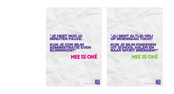 Met deze posters, die landelijk verspreid hangen door diverse organisaties, willen we je aanmoedigen om je eigen grenzen te bewaken. De vragen op de posters lijken misschien gek, maar hoe vaak zeggen we ja op iets wat we eigenlijk niet willen doen?