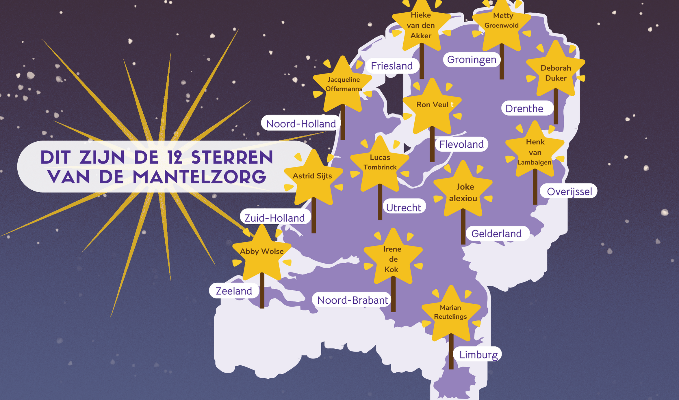 De Sterren van de Mantelzorg zijn bekend. Uit maar liefst 1935 nominaties zijn 12 winnaars gekozen. En daarmee is elke provincie vandaag een ster rijker. Ze zijn om allerlei redenen genomineerd. Maar ze worden allemaal gewaardeerd om hun mantelzorgtaken en enorme inzet door familie, vrienden en collega's. Naast de eretitel ontvangen de winnaars een welverdiende wellnessbon voor twee.