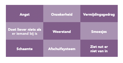 - Schaamte: Je vraagt niet om hulp omdat je verwacht dat anderen hier iets van vinden: ‘Ik ben zeker de slechtste?’.